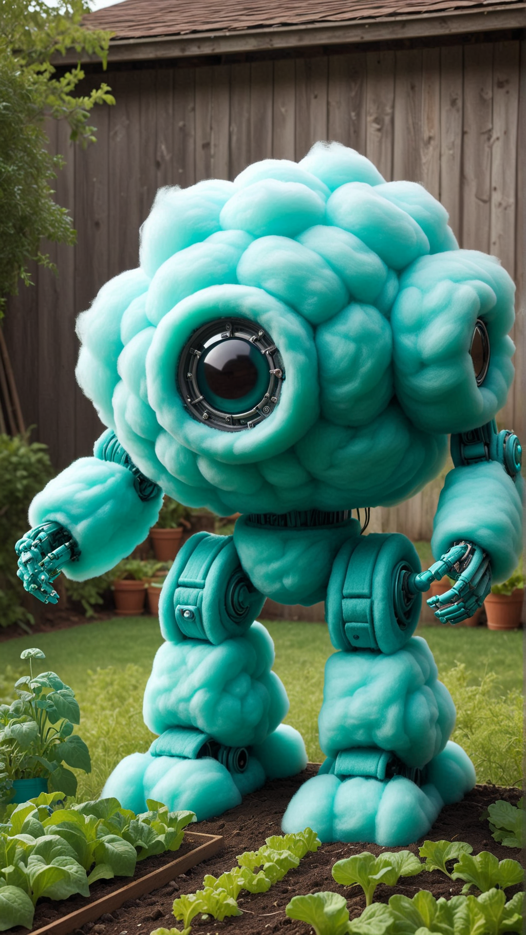 <lora:CottonCandyStyleSDXL:1>CottonCandyStyle Teal a home gardening robot that plants, waters, and harvests vegetables (fuzzy:0.5), dreamy, digital art