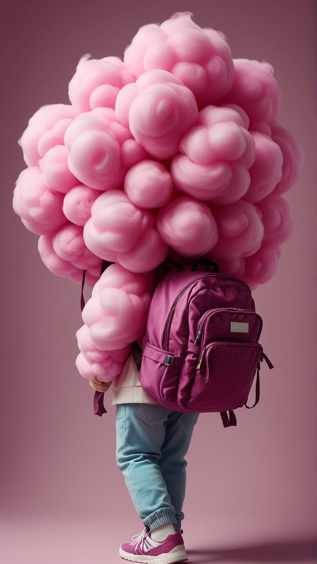 <lora:CottonCandyStyleSDXL:1>CottonCandyStyle Magenta kid with a backpack crafted from brightly colored balloons (fuzzy:0.5), dreamy, digital art
