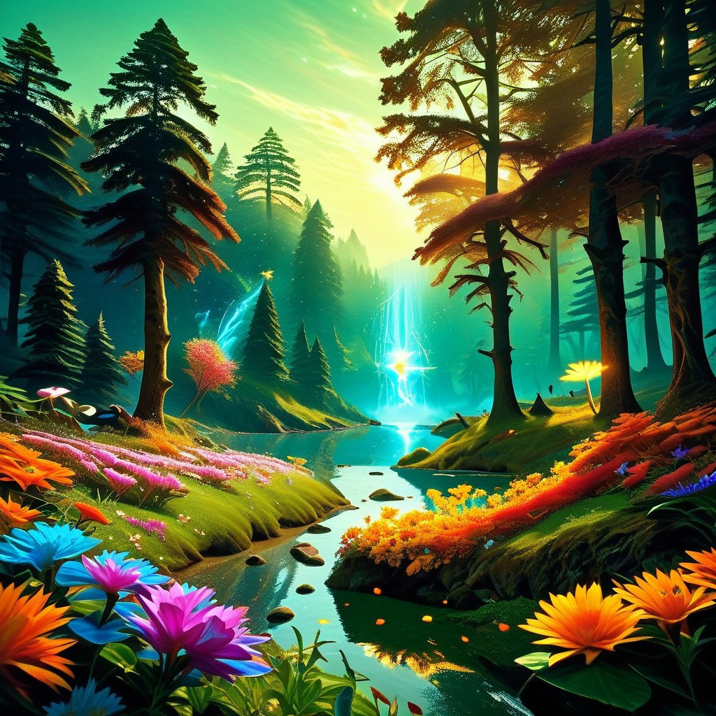 score_9, score_8_up, score_7_up, rating_safe, (8k analog photo,faerie landscape:1.2), a (faerie strange:1.1) forest at night with (glowing:1.1) flowers,river,vibrant colors