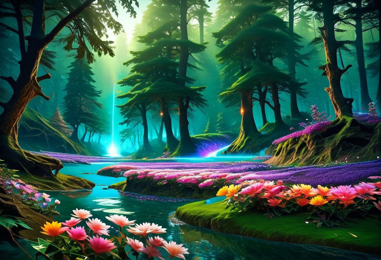 score_9, score_8_up, score_7_up, rating_safe, (8k analog photo,faerie landscape:1.2), a (faerie strange:1.1) forest at night with (glowing:1.1) flowers,river,vibrant colors