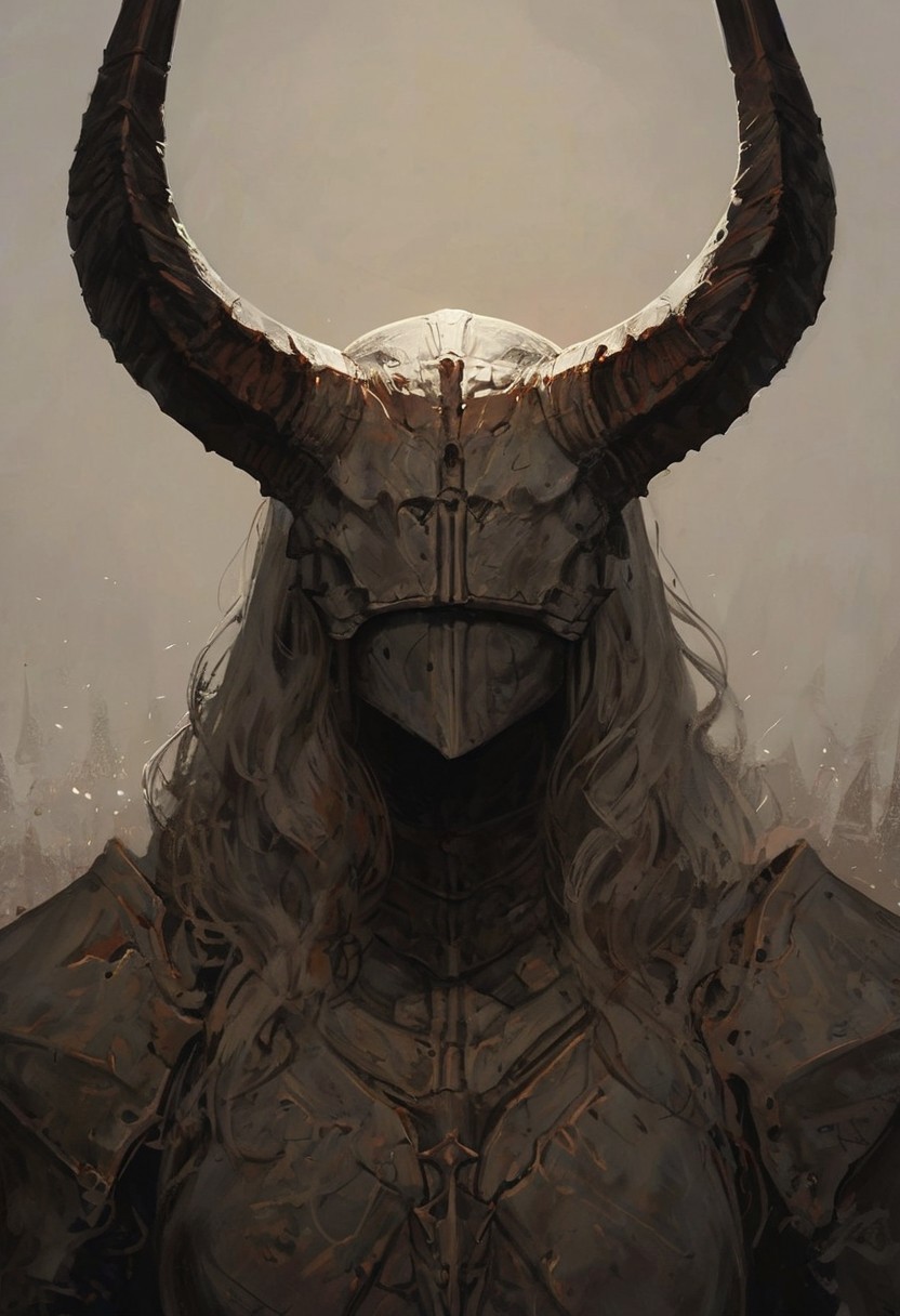 score_9, score_8_up, score_7_up, monster, dark obsidian skin, obsidian, eyeless, dusty, torn, damaged armor, wild, fierce, glowing runes, accesories, his body half overtaken by curse, parts of the armor emerges from within his body, deformed armor, body deformed fused with his armor, Rhaast, horns, simple grey gradient background, half body Portrait, focus from Front, close up, eternal, powerful, cinematic lighting