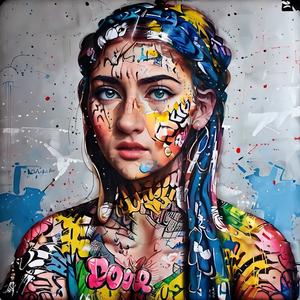 evang, graffiti Girl with pearl earring, masterpiece, extremely detailed face, detailed eyes, gorgeous face