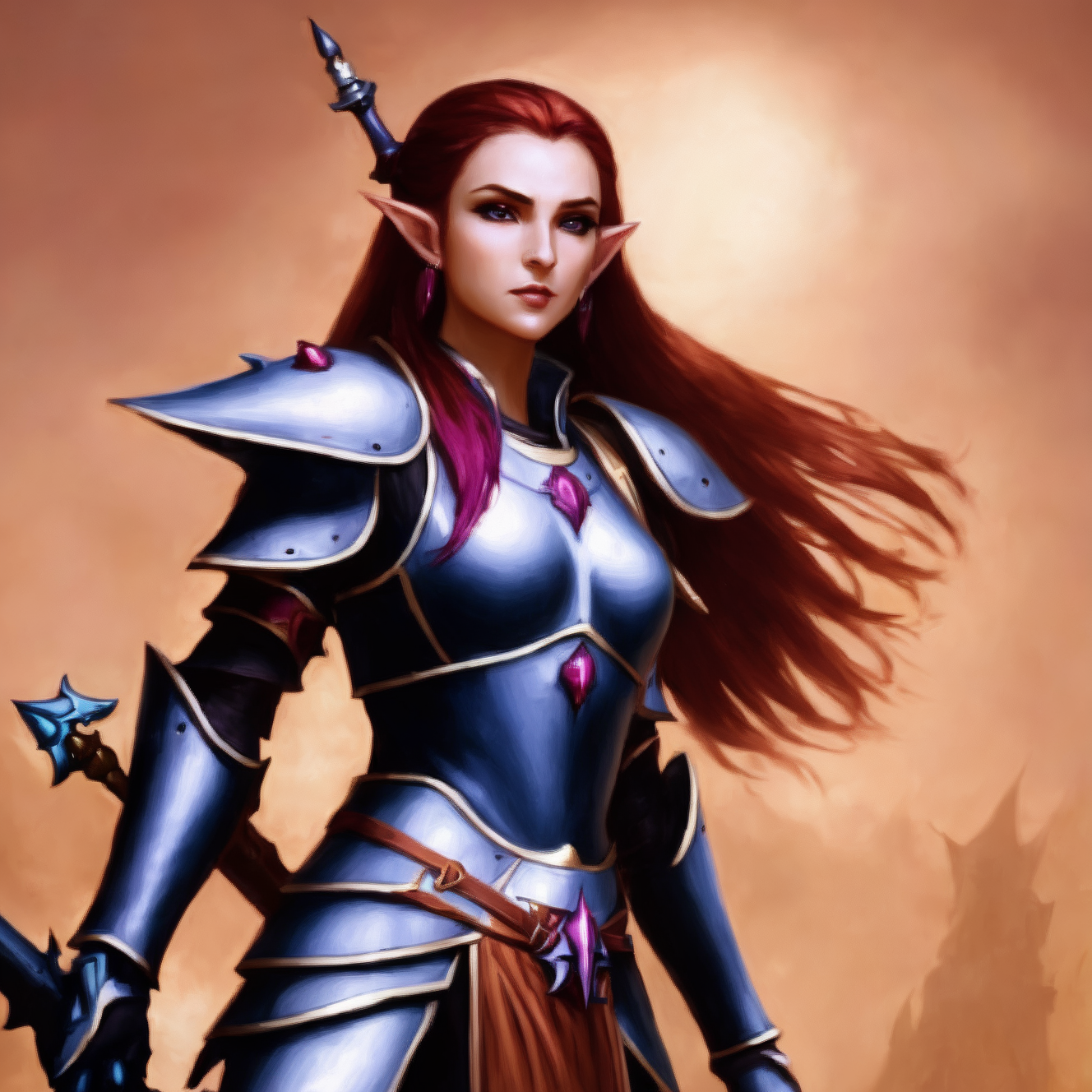 <lora:aeldari_xl_4:0.8> aeldari, asuryani, 1girl, solo, long hair, simple background, white background, holding, purple eyes, full body, weapon, red hair, pointy ears, sword, holding weapon, gun, holding sword, elf, gauntlets, pauldrons, breastplate, aeldari's armor, aeldari's shoulder armor