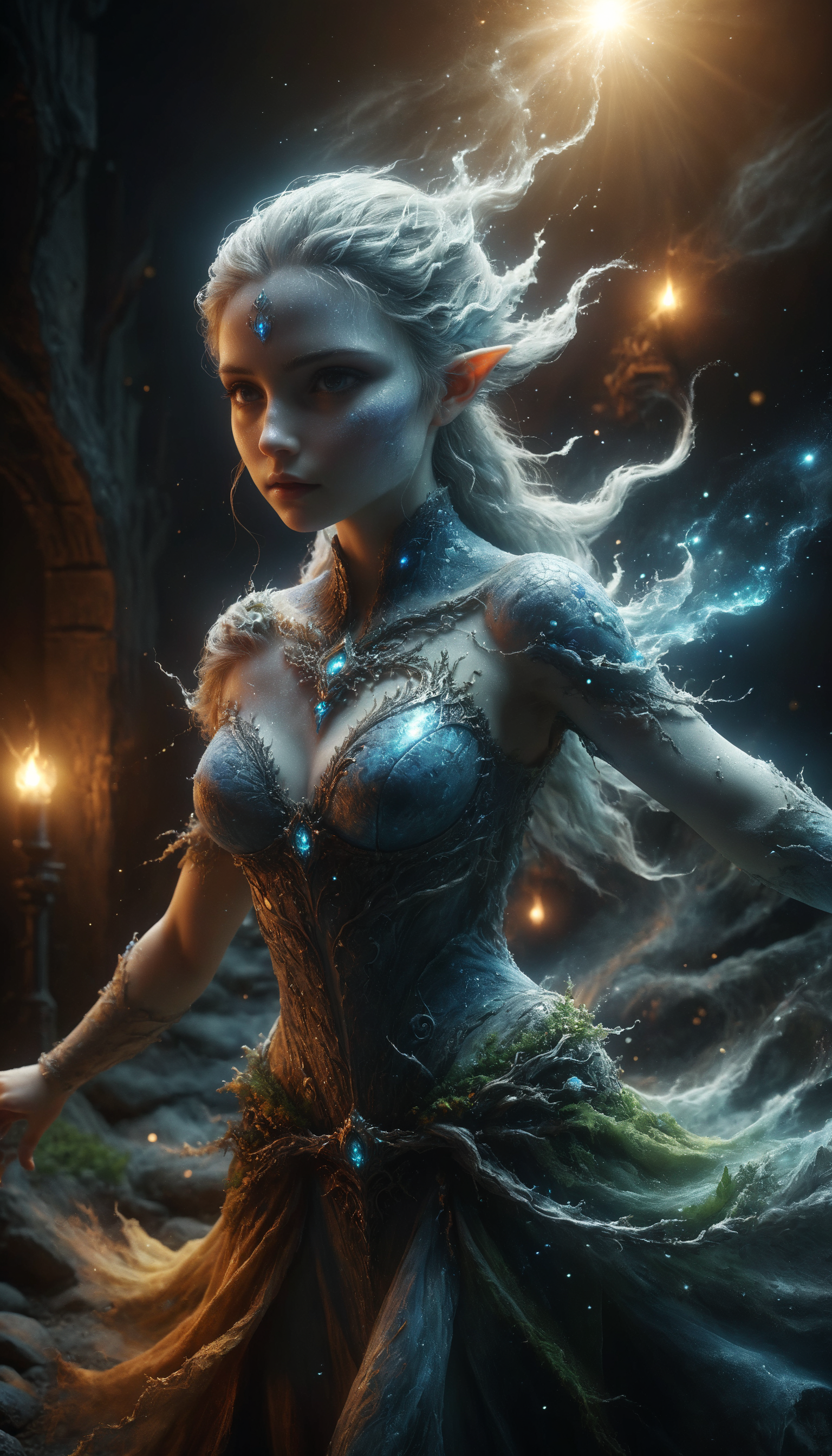 (amazing dream:1.5) An amazing of film photo of (amazing energy plasma) spectre shaped like a energy tiny creature, on night elven village (maximum ultra high definition image quality and rendering:1.1), maximum image detail, maximum realistic render, (ultra realist style), realist side lighting, , 8K high definition, (8K ultra realist detailed skin) realist soft lighting, (realist skin color),(amazing special effect:1.5) epic action, Unreal Engine, cinematic award winning artwork, many details, extreme detailed, full of details,Wide range of colors., dramatic, Dynamic,Cinematic,Sharp details, Insane quality. Insane resolution. Insane details. Masterpiece. 32k resolution. casting shadow style, cucoloris patterned illumination, dvr-lnds-sdxl, ral-dissolve, ral-ertmsphr, ral-porcelain, ral-pxlprtcl, Niji, aidma-niji