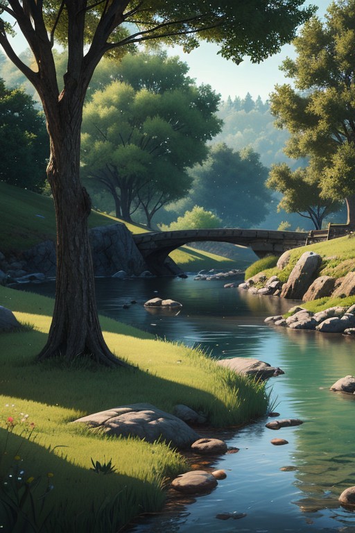 concept art,top-down terrain,game scene,tree,flower,water,rock,outdoor,plant,grass,nature,skull,landscape,tree_stump,river,weapon,road,<lora:dibian:0.8>,