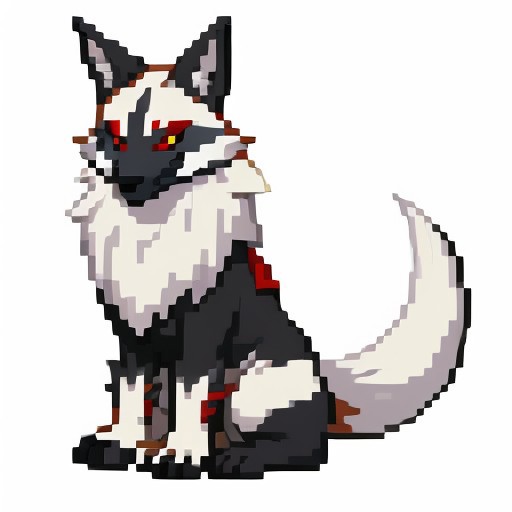 high quality, best quality, (masterpiece:1.05), front sprite, three-quarter view, (front:1.05), (full body:1.05), pixel, pixelart, (front view, fighting:1.05), (single, solo, alone, individual:1.05), <lora:pksp768_V2-1:0.5>, pokemon, coyote, linoone, masked1.2, hood, long, thin, lithe, gen5, (darktype, coyote, monster:1.08), black, grey, (darktype:0.95), (creature:0.6), (coyote, black mask, quadruped, black body, lupine:0.95), (white background:1.1)