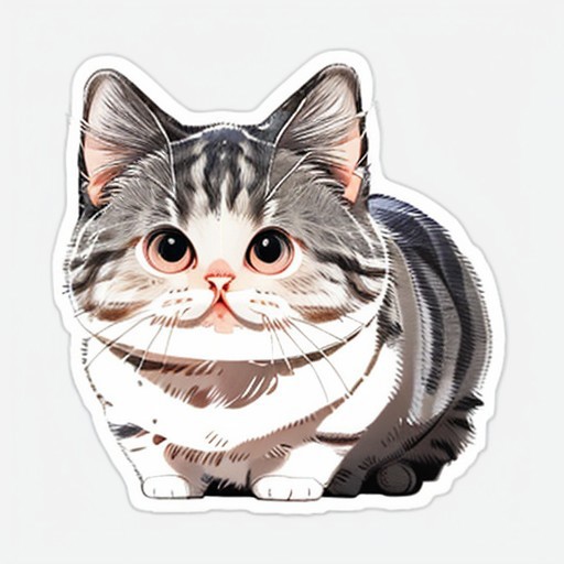 <lora:Kawaii:0.8>, solo, looking at viewer, blush, simple background, full body, grey background, no humans, animal, cat, :<, outline, triangle mouth, white outline, animal focus, whiskers, fluffy, round cat,