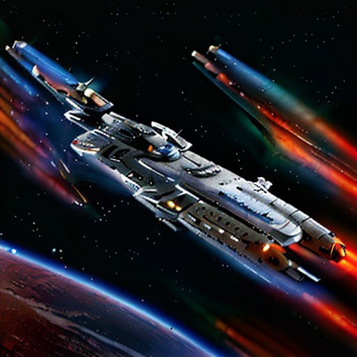 spaceship in outer space, nebula background, epic scene, best quality, high quality, sci-fi, landscape shot