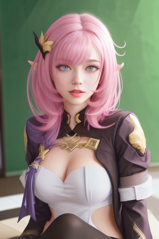 (Realistic painting style:1.0), masterpiece, best quality, absurdres, elysia (miss pink elf) (honkai impact), slit pupils, elysia (honkai impact), elf, pointy ears, 1girl, breasts, cleavage, solo, pink hair, tongue, tongue out, large breasts, looking at viewer, shorts, hair ornament, black shorts, blue eyes, bangs, long hair, black thighhighs, smile, :p, short shorts, closed mouth, long sleeves, sitting, pink pupils,<lora:elysia_1024_Lion_dim128_kohyaLoRA_fp32_1e-1noise_token2_24-3-2023:1>, crossed legs