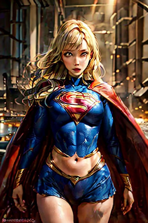 woman posing for a photo, (wearing golden supergirl_cosplay_outfit:1.2),(wearing ballet outfit with yellow tutu:1.2), good hand,4k, high-res, masterpiece, best quality, head:1.3,((Hasselblad photography)), finely detailed skin, sharp focus, (cinematic lighting), night, soft lighting, dynamic angle, [:(detailed face:1.2):0.2],(((inside theater))), <lyco:supergirl_ballet_dress-10:0.35>