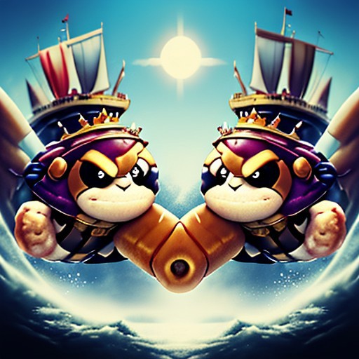 the prince of muffins and the king of donuts fighting each other on a ship