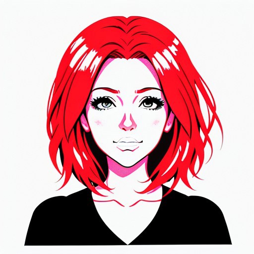 Redhead girl. Anime style. Black and white. Simple lines. White background. Grey, black lines. Line art. Heavy strokes. cel shading stroke-