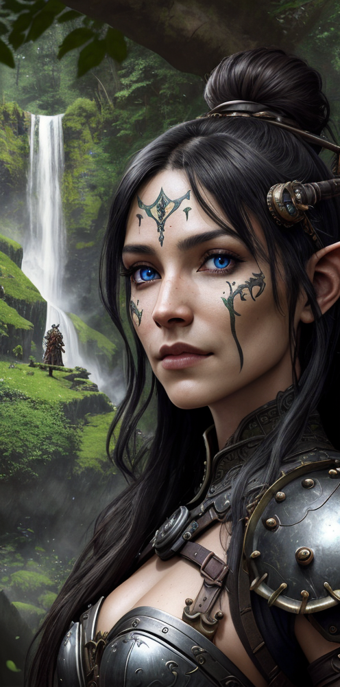 photorealistic portrait of a Orc with intricate steampunk accessories, score_9, score_8_up, score_7_up, black hair, male orc, raiding party, monster, in the forest near a waterfall, Stone castel , god ray shining on top of the waterfall, alot of flowers, wines, walking towards a castel, big axe, detailed armor, highly detailed, pov, , HD image, Sharp Details, high res image, masterpiece, perfect eyes,