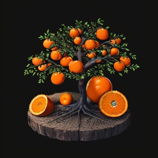 Tree, orange tree, (oranges fruit:1.4) ,game icon, black background,