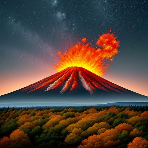 beautiful fiery pineforest on fiery mountain volcano