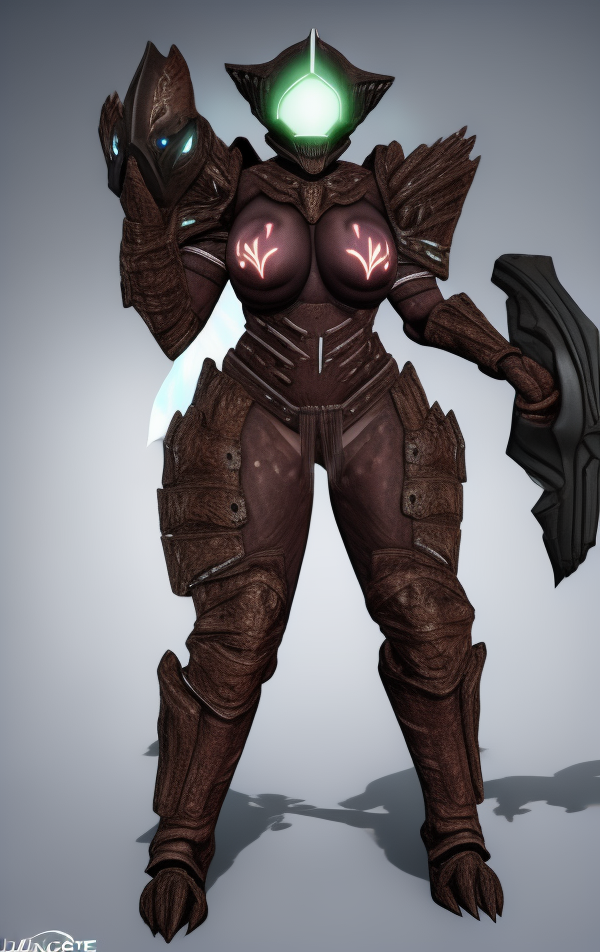dhive, standing, pelvic curtain, armor, glowing eyes, helmet, breasts, <lora:DestinyHive-000011:0.85>