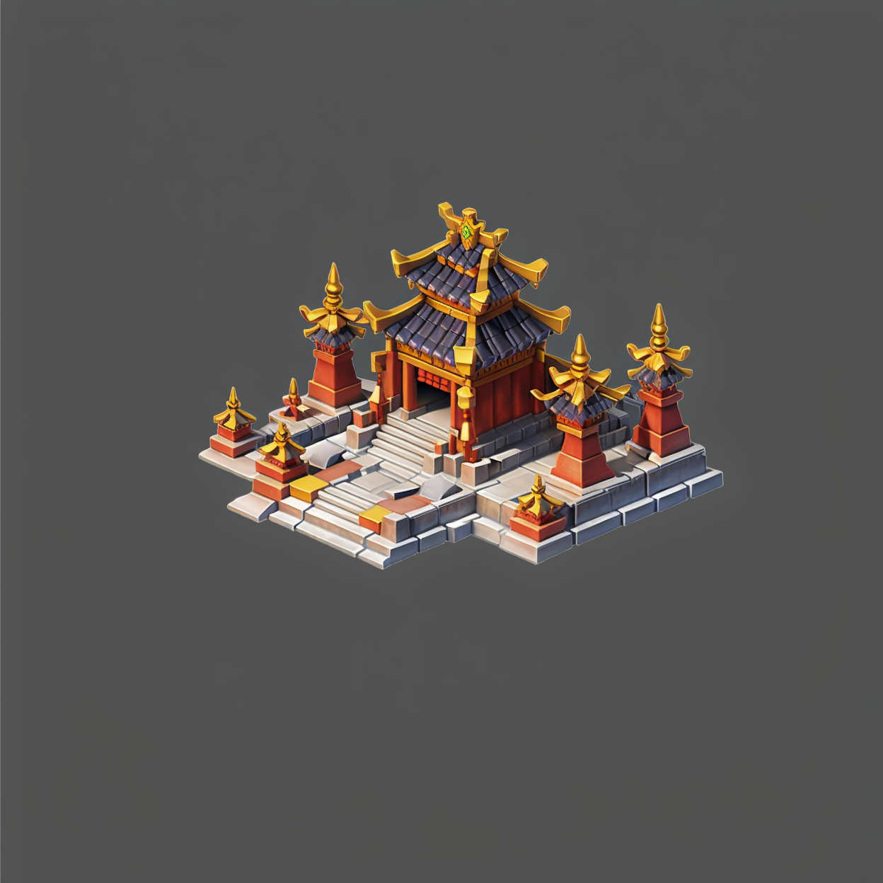 Top view,still life,East Asian architecture,grey background,stairs,simple background,statue,faux figurine,(Gold ornaments:0.1), <lora:Antique sceneV2:1>,