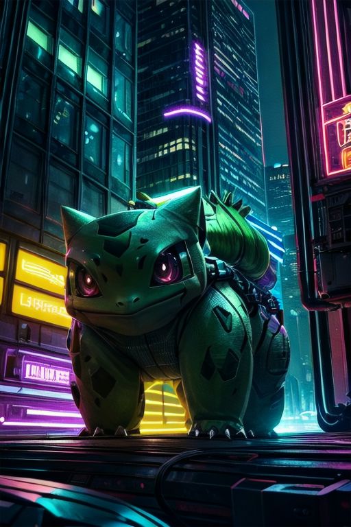 punkai, cyberpunkai, (Bulbasaur_Pokemon), cybernetic, 8k unreal engine render, (robot), cyborg, inside an intricate city full of neons, action shot, detailed intricate iris, very vivid lighting, heavy shadows, detailed, (vibrant, photo realistic, realistic, dramatic, dark, sharp focus, 8k),
