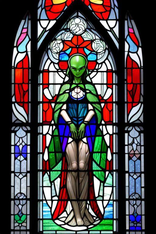 stgl2023, uhd, best quality, masterpiece, flat colors, the arrival of an (alien) stained glass window