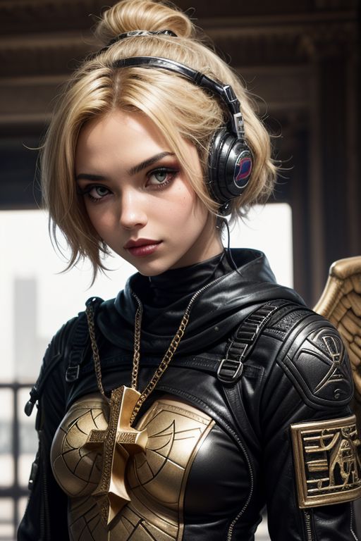 , solo, portrait of goodisis, goodnes ornate, egypt, energy, aura, dust, debris, Face looking, tanned skin, women, Ankh Cross, wings, ankh, Black Eyeliner blond cyber punk