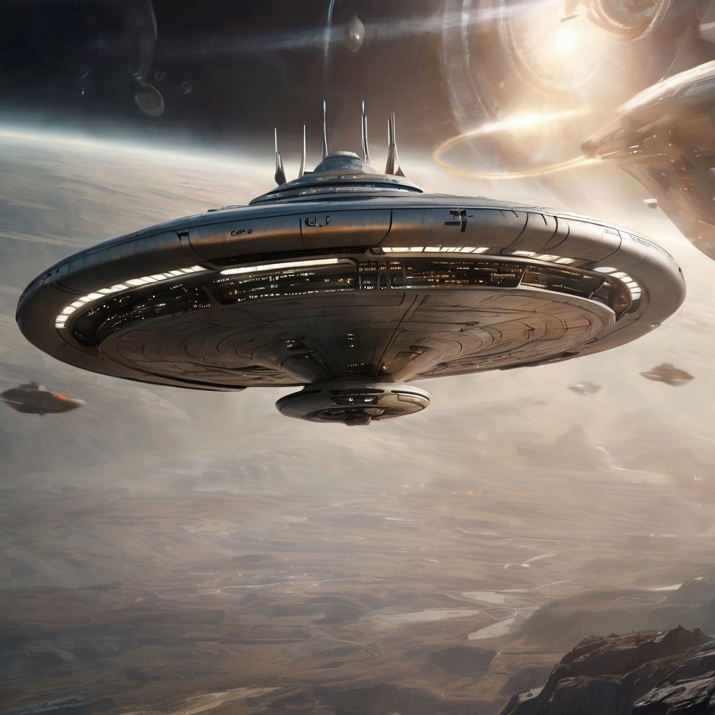 Create a stunning image of the iconic Starship Enterprise NCC 1701 from Star Trek: The Original Series in a dramatic and futuristic setting. Show the Enterprise in orbit around a future version of Earth, with bright city lights and advanced technology visible on the surface. Add a touch of cinematic flair with intense lens flare lighting, creating a sense of epic adventure and exploration. The Enterprise should be the focal point, proudly showcasing its iconic design and the beauty of space exploration. An inspiring and imaginative scene, this image will capture the spirit of Star Trek and the endless possibilities of the final frontier.