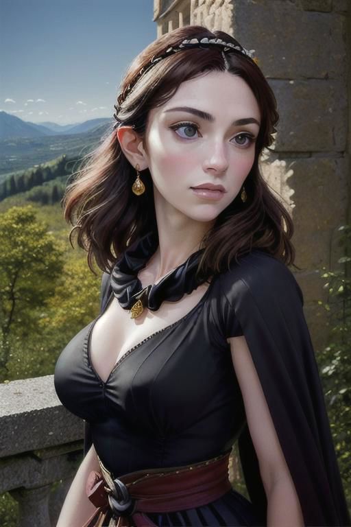 (Caravaggio style), beautiful italian woman hiking, small boobs, gorgeous castle room scenery, bright day, stunningly beautiful side view, low angle, dynamic pose, (busy), hyperrealistic ((upper body)) cinematic shot of a (beautiful) (thin) 34 brunette at a renaissance era, as an painting by caravaggio,wearing intricate renaissance dress and accessories including a cloak, heavy elizabethan necklace her face,she has high resolution imperfect (pale) skin, small natural breasts,use advanced image processing techniques to create a vibrant and romantic scene and an incredibly detailed lifelike image that looks like it was taken with a hasselblad using a wideangle lens and hyperspectral imaging film, high resolution skin, 8k, 150mm, subsurface scattering, highly detailed eyes, ultra realistic skin, gorgeous face, hyperrealistic, facial muscles,