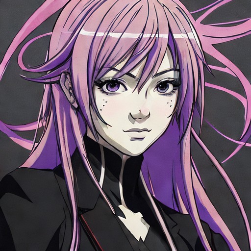 Anime Girl. Duotone: Orange and Black. purple highlights. Colored purple lines. Strong thick fat black dark lines. Amateur Lines. FAST RUSHED. UNFINISHED. Red highlights. Highlights.