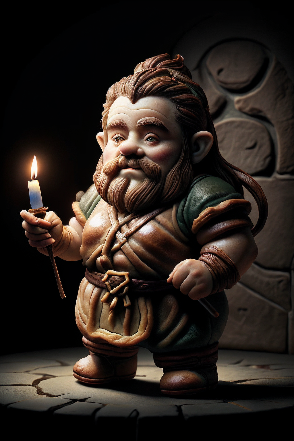 dwarf made out of pastry, holding candle, in dark dungeon, at night, shadows, dithered light <lora:ral-pastry-sd15:1>