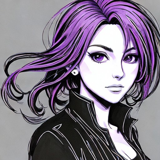 Anime Girl. Duotone: Orange and Black. purple highlights. Colored purple lines. Strong thick fat black dark lines. Amateur Lines. FAST RUSHED. UNFINISHED. Red highlights. Highlights.