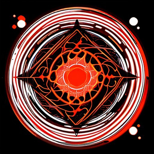 Anime style. Redhead girl. Metal art. Esoteric art. Strong stroke. Red and Orange stroke lines. Red and white outline.