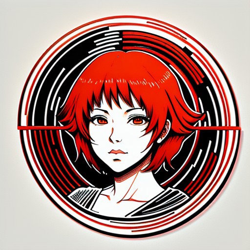Anime style. Redhead girl. Metal art. Esoteric art. Strong stroke. Red and Orange stroke lines. Red and white outline.