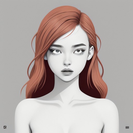 Nude redhead. monochrome, greyscale, Flat illustration.
