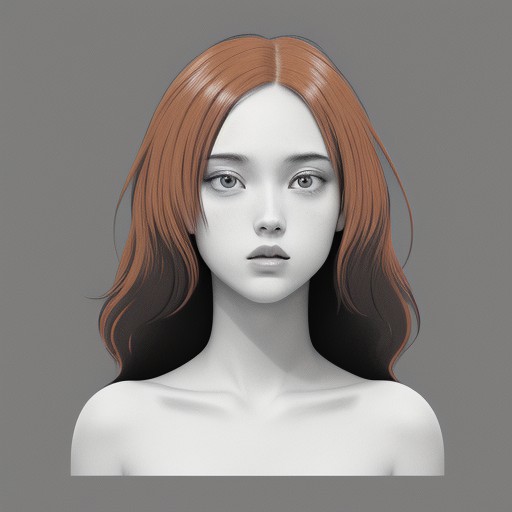 Nude redhead. monochrome, greyscale, Flat illustration.