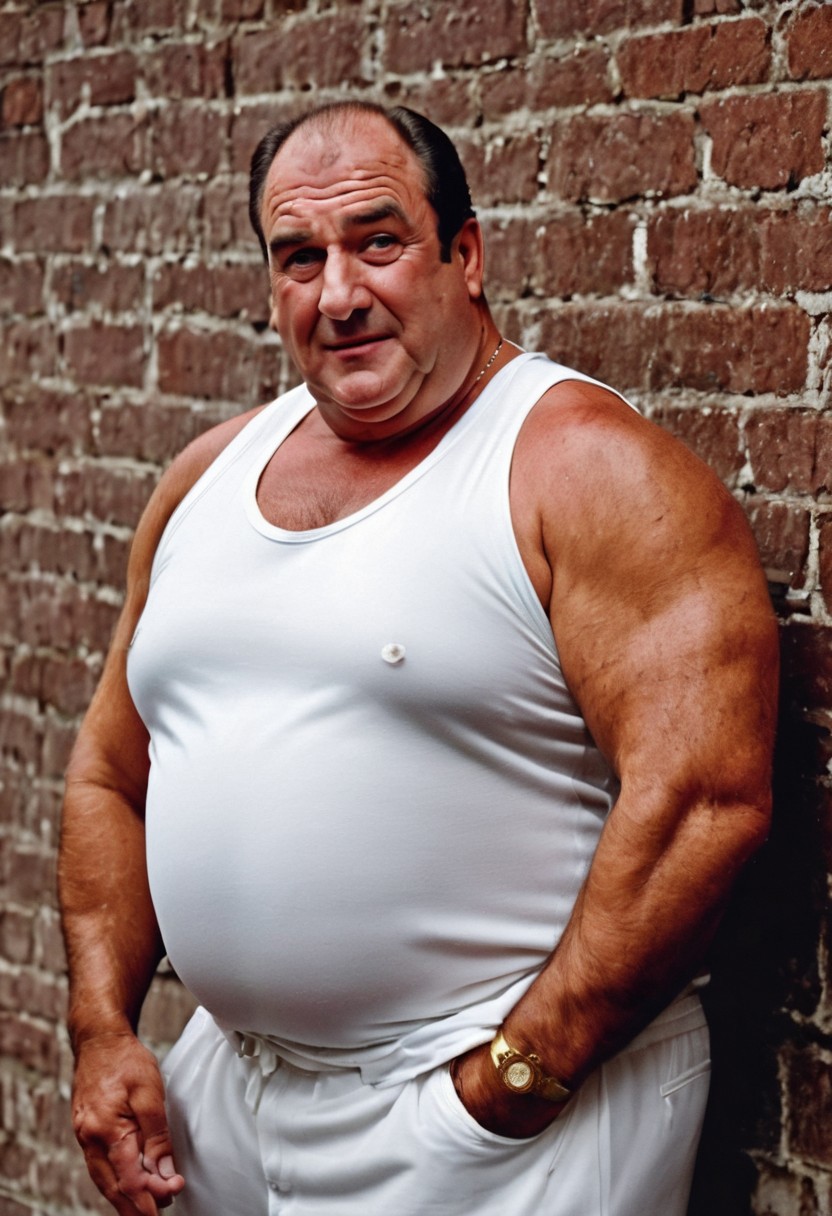 daddybear, gay bear, ((romantic flirty expression, intimate, cinematic hazey atmosphere, arthouse movie, dark, nighttime, night, dark shadows, photograph, romantic movie scene)), old mature chubby obese german strongman man, old bavarian musclechub daddy, tanned skin, sweaty skin, sweating, oily skin, extremely hairy, hairy chest, hairy arms, hairy shoulders, doublechin, fat arms, big arms, gigantic biceps, hairy armpits, huge belly, gigantic chest, handsome chubby old face, loving expression, flirty smirk, white latex undershirt muslceshirt tanktop, golden jewellery, chunky golden rings, gold earring, in a dark gym workout at night, nighttime, dim, janitor, hobo, construction worker, trucker, brute, wise, barbarian, berserker, leader, boss, ((flexing his massive biceps, tanned old german bodybuilder)), ((masculine manly chubby face, extremely intimate sensual expression, loving expression)), (((sensual sexy pose, leaning against a brickwall in a gym)))