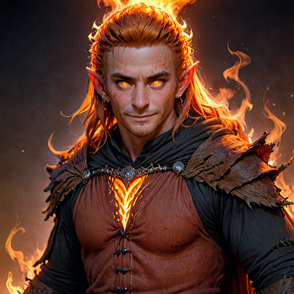 1boy(FireGenasi, fire genasi, young man, sorcerer, tall, handsome, yellow eyes, fiery hair, colored sclerae, white skin, human ears, solo, cowboy shot, angry, looking at the viewer, solo, slender, pumped up), detailed background, depth of field, full height, subsurface scatter, against an active volcano, (art by Charles Douglas Richardson in style of Brian Froud:1.2)