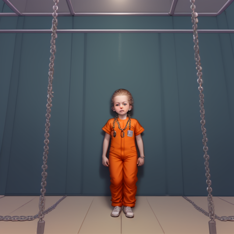 <lora:Rugrats_90s_Style:1> 1girl, child, orange_jumpsuit, chain_gang, prison,