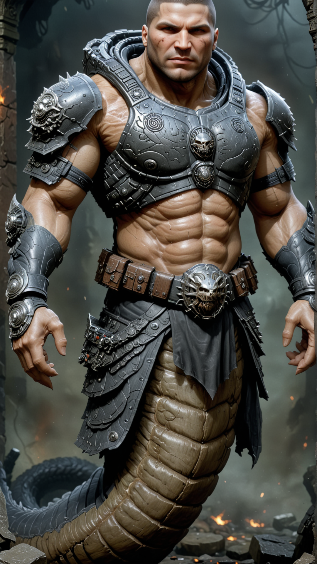 <lora:NagaSDXL:1>naga, full body, Marcus Fenix from Gears of War, detailed background