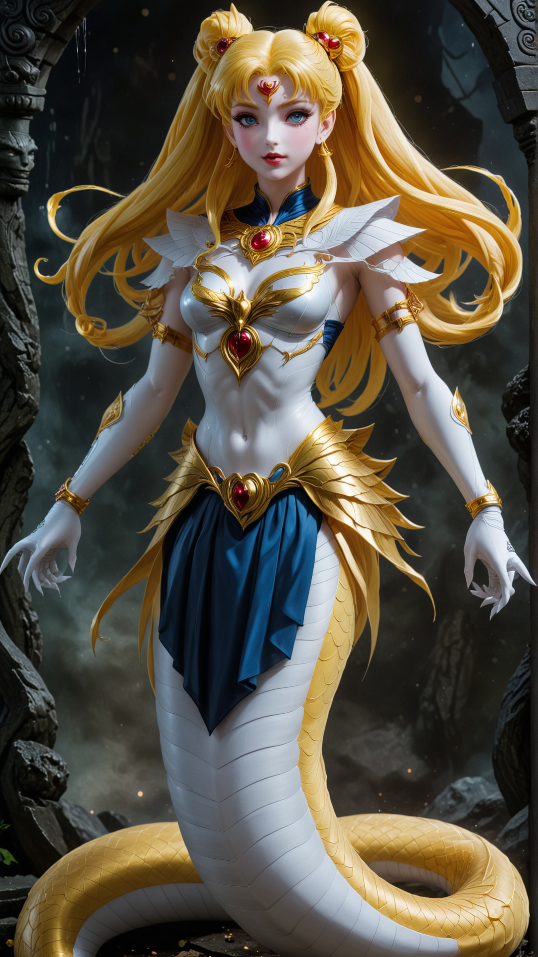 <lora:NagaSDXL:1>naga, full body, Sailor Moon from Sailor Moon, detailed background