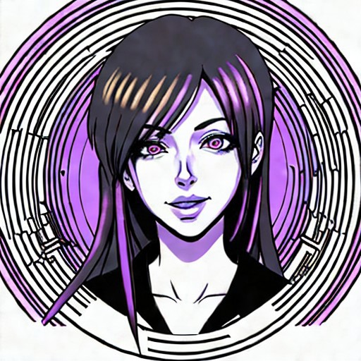 Anime Girl. Duotone: Orange and Black. purple highlights. Colored purple lines. Strong thick fat black dark lines. Amateur Lines. FAST RUSHED. UNFINISHED. Red highlights. Highlights.