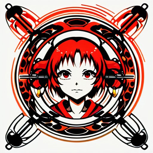 Anime style. Redhead girl. Metal art. Esoteric art. Strong stroke. Red and Orange stroke lines. Red and white outline.