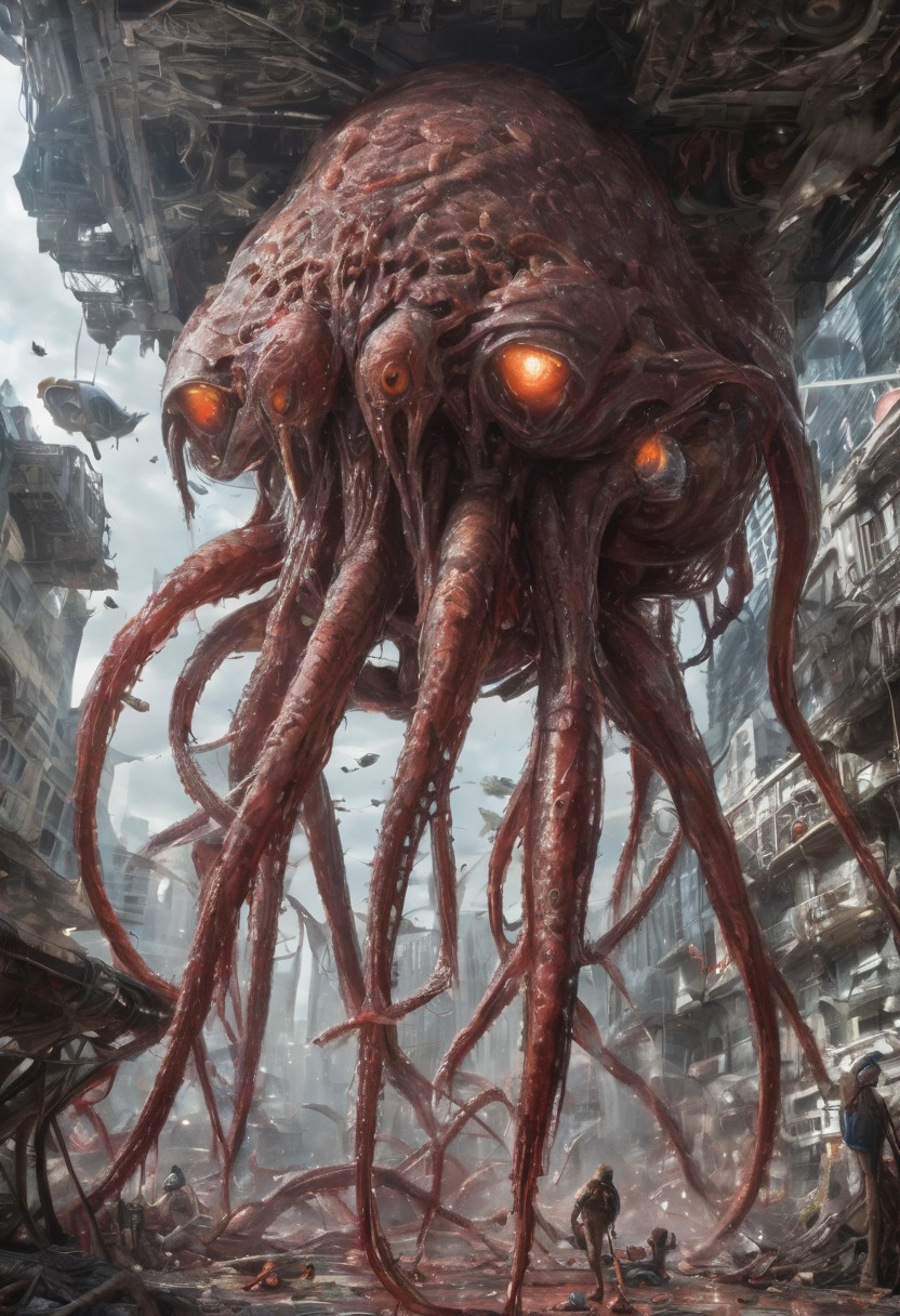 futuristic, alien invasion, tentacles, insectoid, carnage, chaos, highly detailed, masterpiece, Award winning photo journalism, detailed photo, realism, detailxl