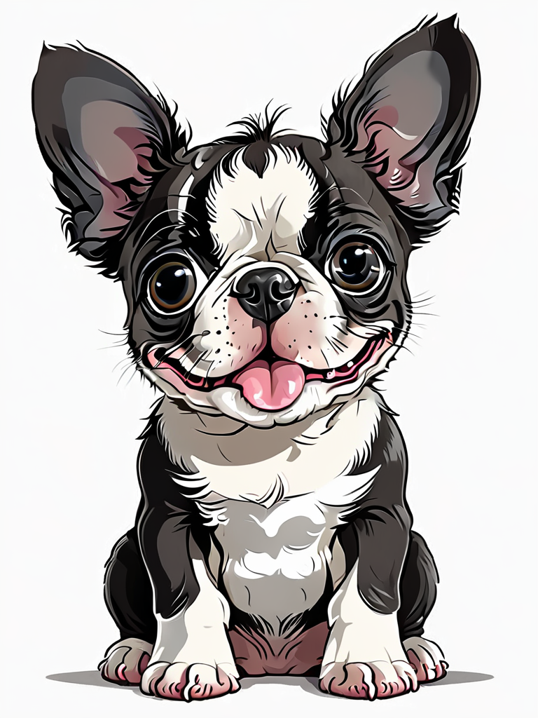 T shirt design, a very cute happy fluffy boston Terrier puppy with big eyes,sitting <lora:Drawing_cute_animals__Isa_Bel:0.5> <lora:TShirtDesignRedmondV2-Tshirtdesign-TshirtDesignAF:1>
