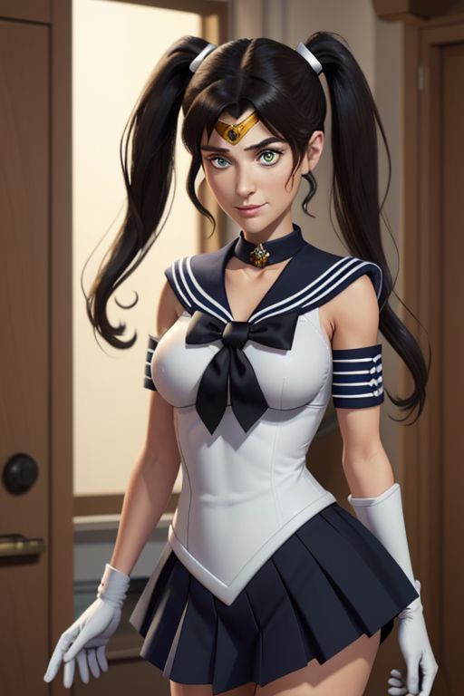 breathtaking 8k, clean, solo, cute young adorable young female version of Ben Tennyson wearing a sailor moon costume including short sailor dress as well as the rest of the costume. beautiful girl, embarrassed look, long twintails in buns, gloves, (black sailor senshi uniform with elongated bow looking more like a long tie), indoor shot, vivid, vibrant <lora:sailor_senshi_uniform-1.0:0.8> . award-winning, professional, highly detailed. Gwen Tennyson is in the background laughing at the sight.