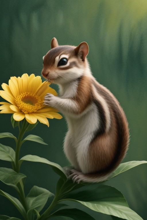 Chipmunk. A chipmunk eating a flower. butterfly. watercolor. best quality, 8k.
