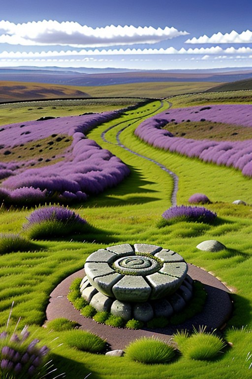 Pictish stone, Celtic stone, Scottish thistle, othala, wild grass, rowan three, Calluna plant, plains, moorland, focus thistle, background crossroads