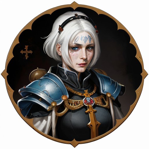 Ephrael Stern Sister superior order of our Martyred Lady white hair Sister of battle fleur-de-lise tattoo under left eye