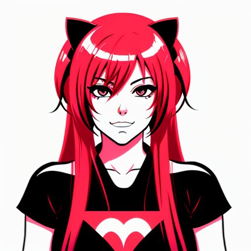 Anime style redhead. white background. Simple lines. Black white red only. Neon shapes in background.