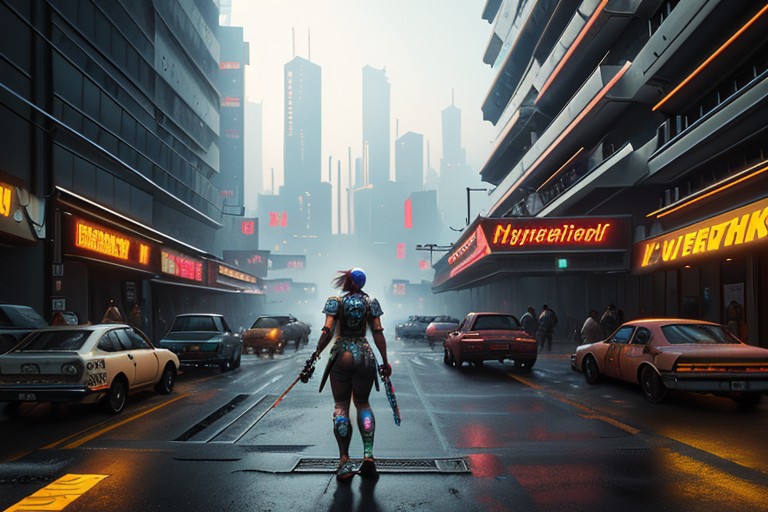 inner city, ultra detailed fantasy, cyberpunk, cyberpunk 2077, realistic, behance hd, artstation, deviantart, global illumination radiating a glowing aura, hyperrealistic