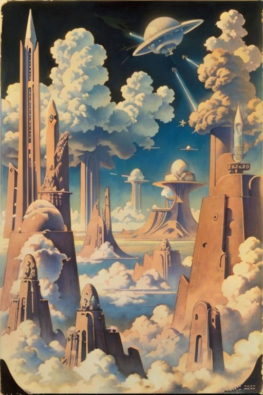 Clouds, science fiction, by Hannes Bok