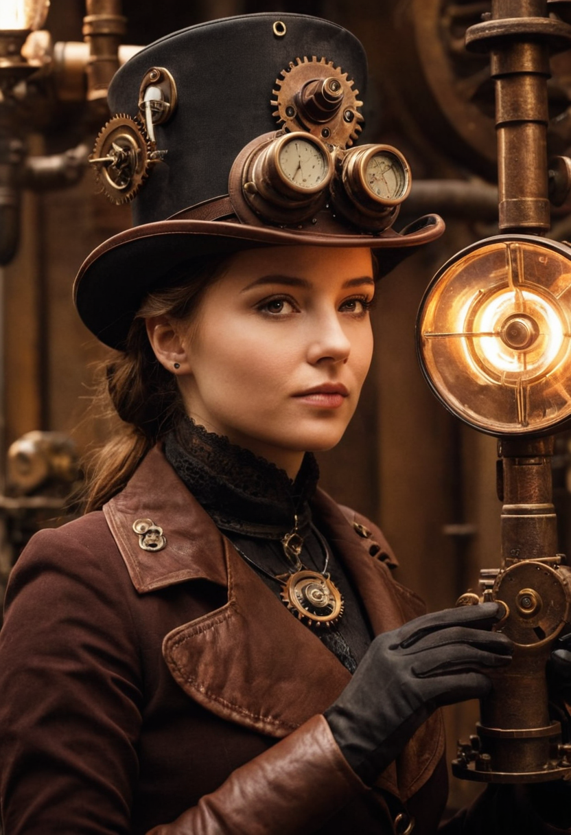cinematic still . emotional, harmonious, vignette, 4k epic detailed, shot on kodak, 35mm photo, sharp focus, high budget, cinemascope, moody, epic, gorgeous, film grain, grainy, Steampunk, , retrofuturistic science fantasy, steam-powered tech, vintage industry, gears, neo-victorian, steampunk